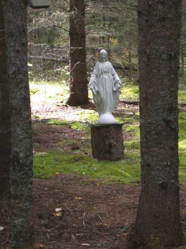 Partial breaks in a stand of dense spruce permit some moss growth at Prayer Place. |
