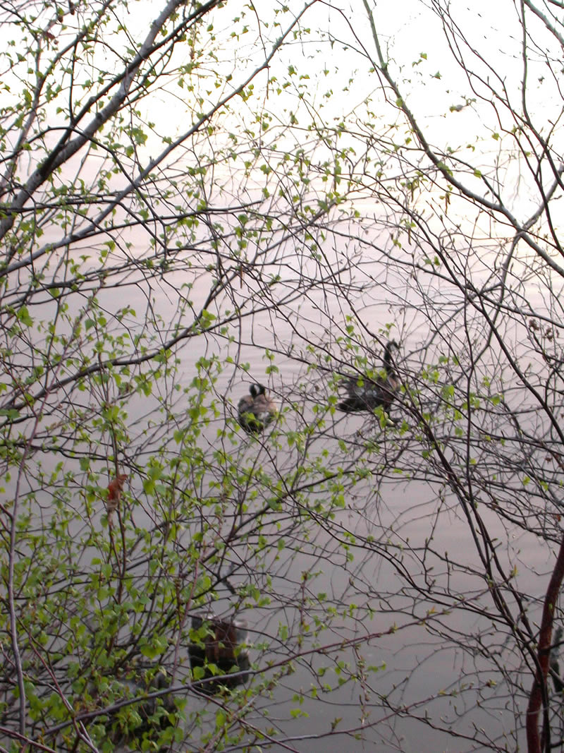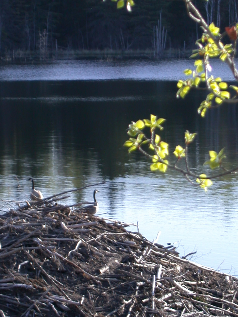 May 23, 2014 Spring was late this year but finally leaves are emerging from winter cocoons and a second pair of Greater Canada Geese are pondering their next attack strategy to oust the first pair that has taken up the choice nesting location on top of the Beaver Lodge. My money is on the first pair that staked their claim. My advice to this pair is to not dawdle so long feeding on the way north and arrive a few weeks earlier. This photo was taken early morning before the sun rose but the sky was bright and announcing the new day. |