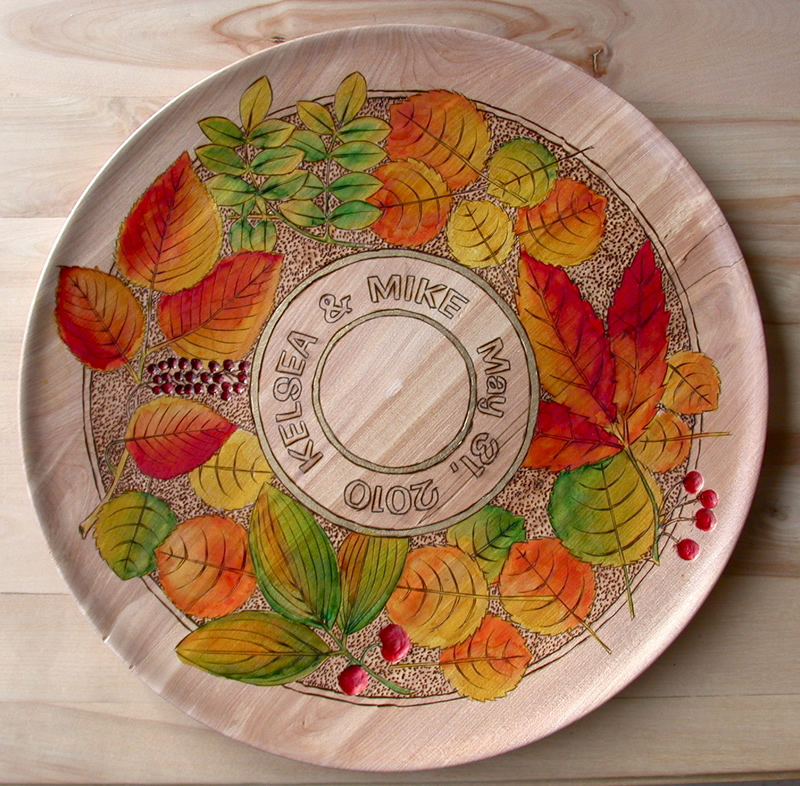 large (16 inch diameter ) birch plate. I first burned the image